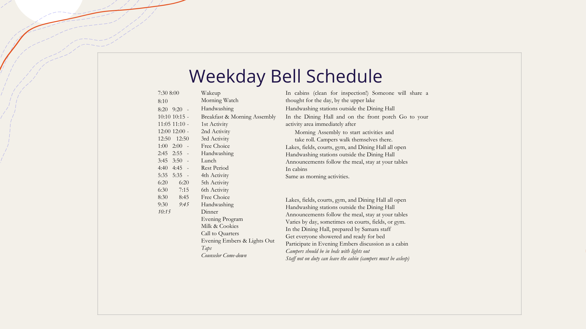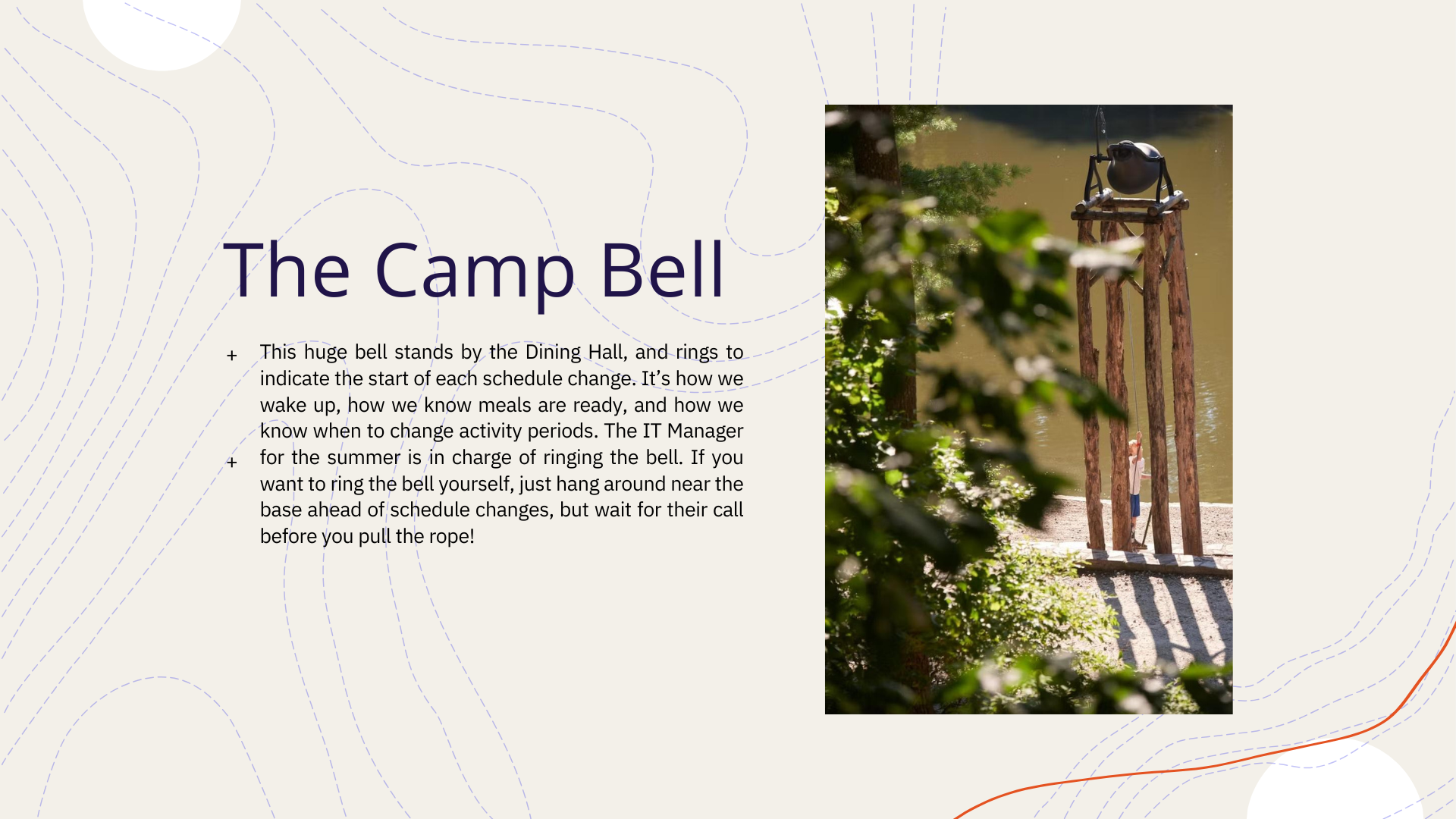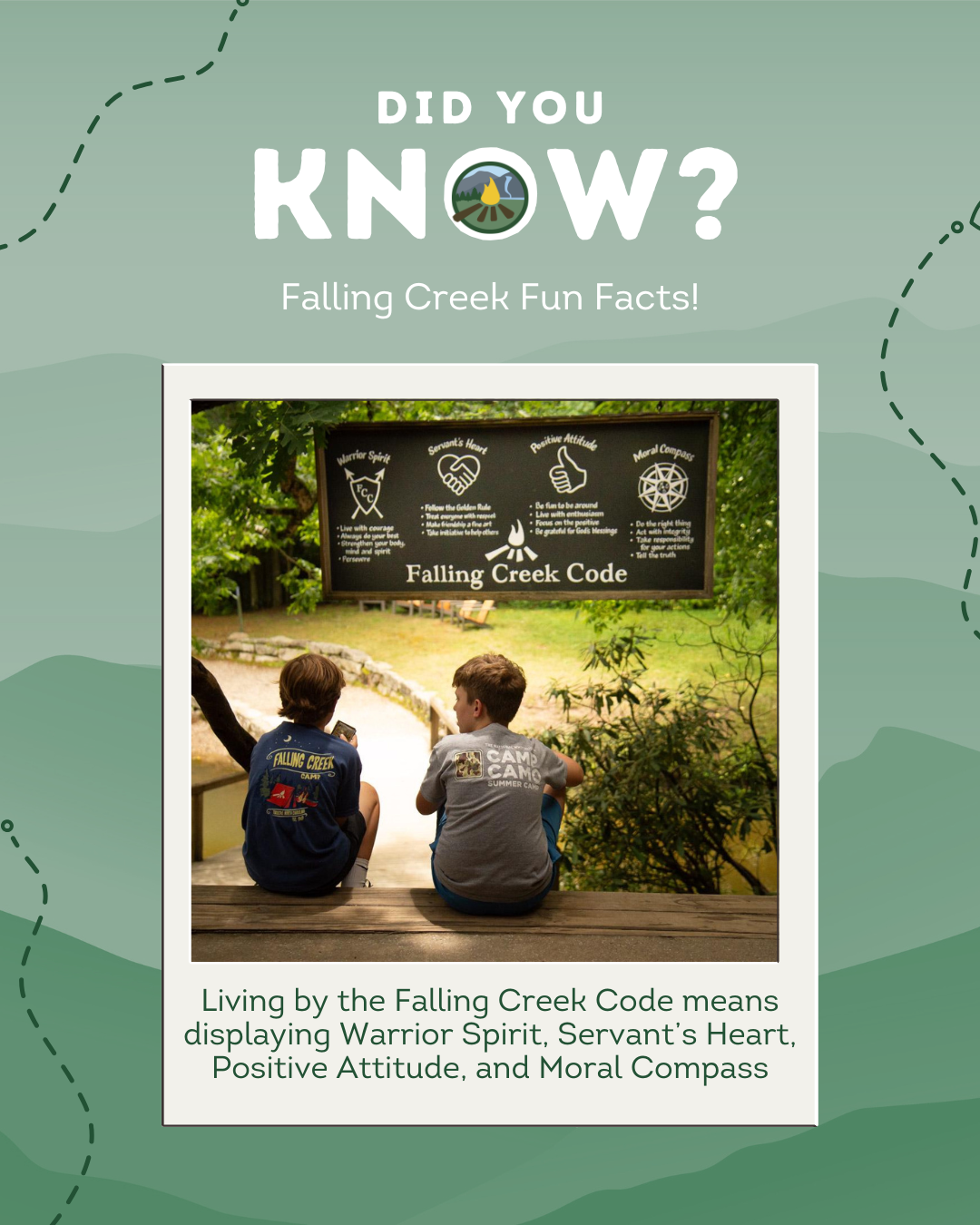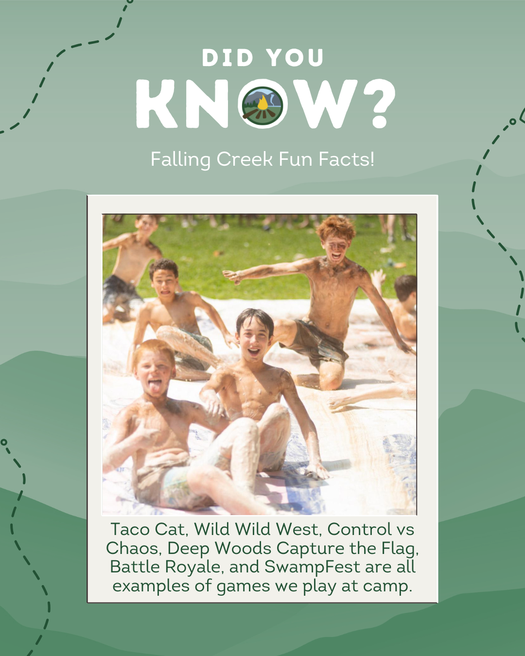- Camp Lingo, a mini Falling Creek dictionary explaining the terms and phrases you’ll hear around camp.